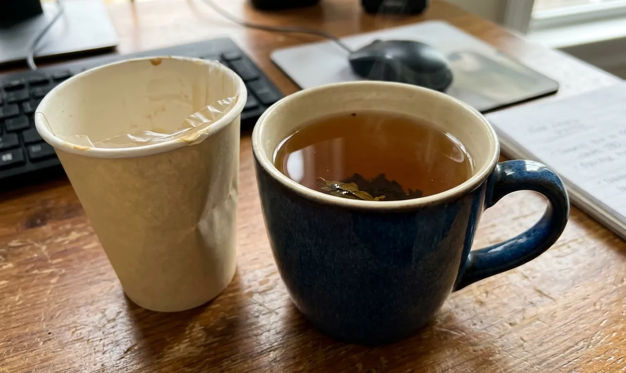Výměna známého kelímku za kvalitní hrnek je malým krokem, který vám zpříjemní pracovní den.