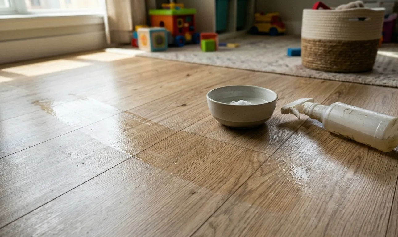 Obvykle začínám tím, že rozpustím několik lžic jedlé sody v teplé vodě a vlhkým hadříkem přejedu nejznečištěnější místa. Jedlá soda působí jako mírné abrazivo a přírodní antiseptikum. Pak vyměním vodu, přidám trochu octa a vytřu podlahu. Ocet dokonale neutralizuje zbytky jedlé sody a dodá laminátové podlaze lesk.