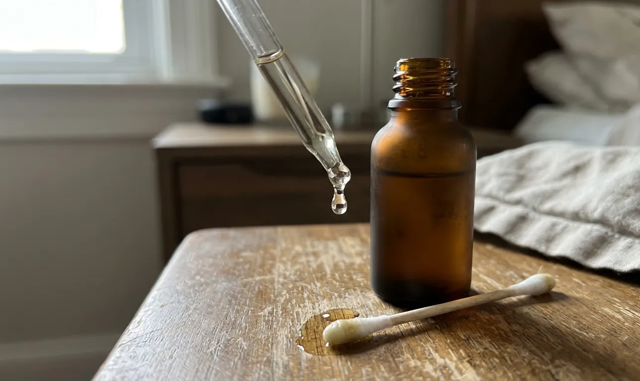 Opatrná aplikace broskvového nebo meruňkového oleje obyčejnou vatovou tyčinkou.