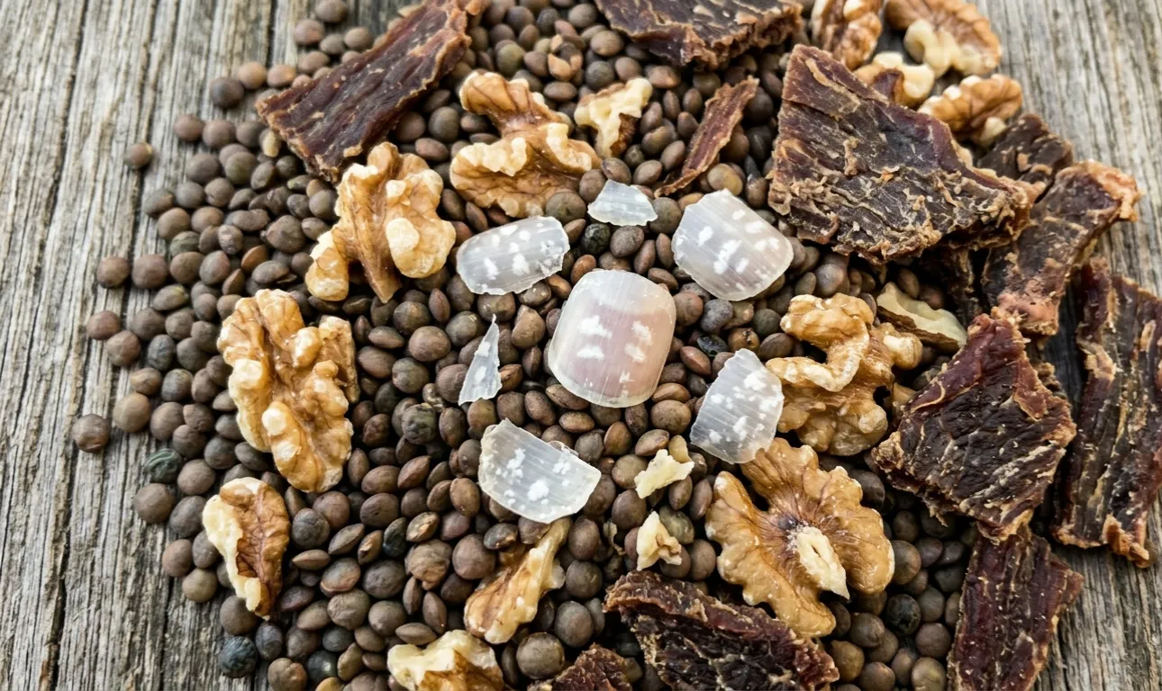 Zařazení rostlinných zdrojů aminokyselin, jako je čočka a ořechy.